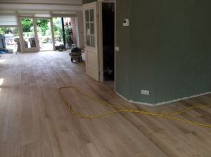 Renovatie eikenvloer in Lisse (tijdens het schuren)
